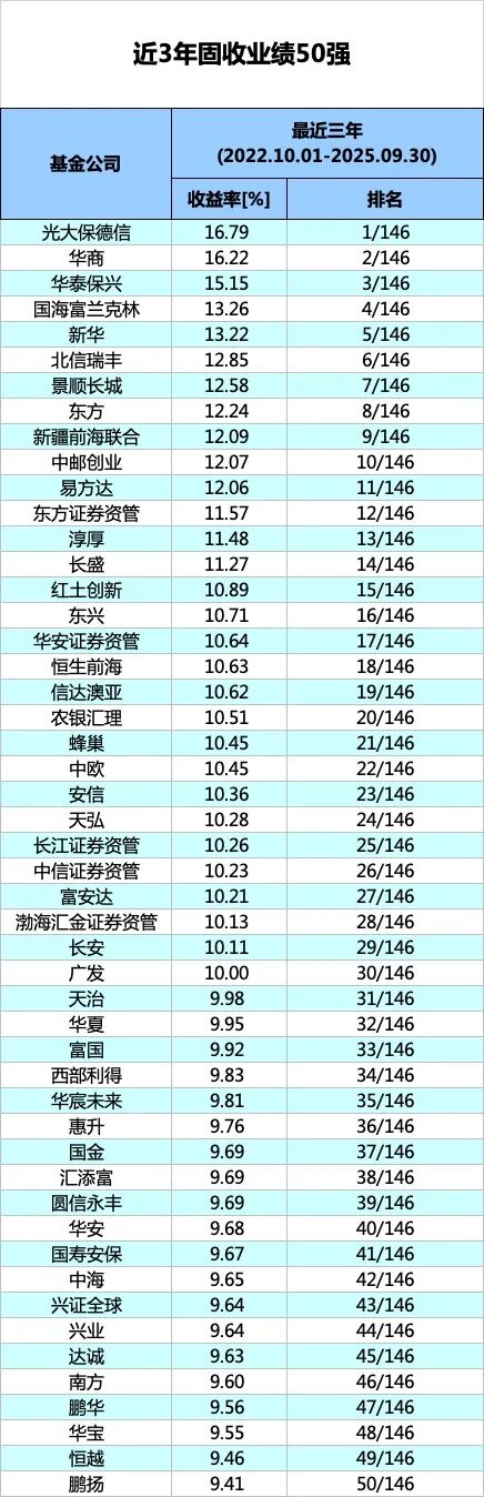 哪些公司在过去3年、5年、10年获得好收成?2025年前三季度又有哪些公司业绩领先?国泰海通证券刚刚公布的基金公司固定收益类基金绝对收益排行榜,揭晓上述答案。